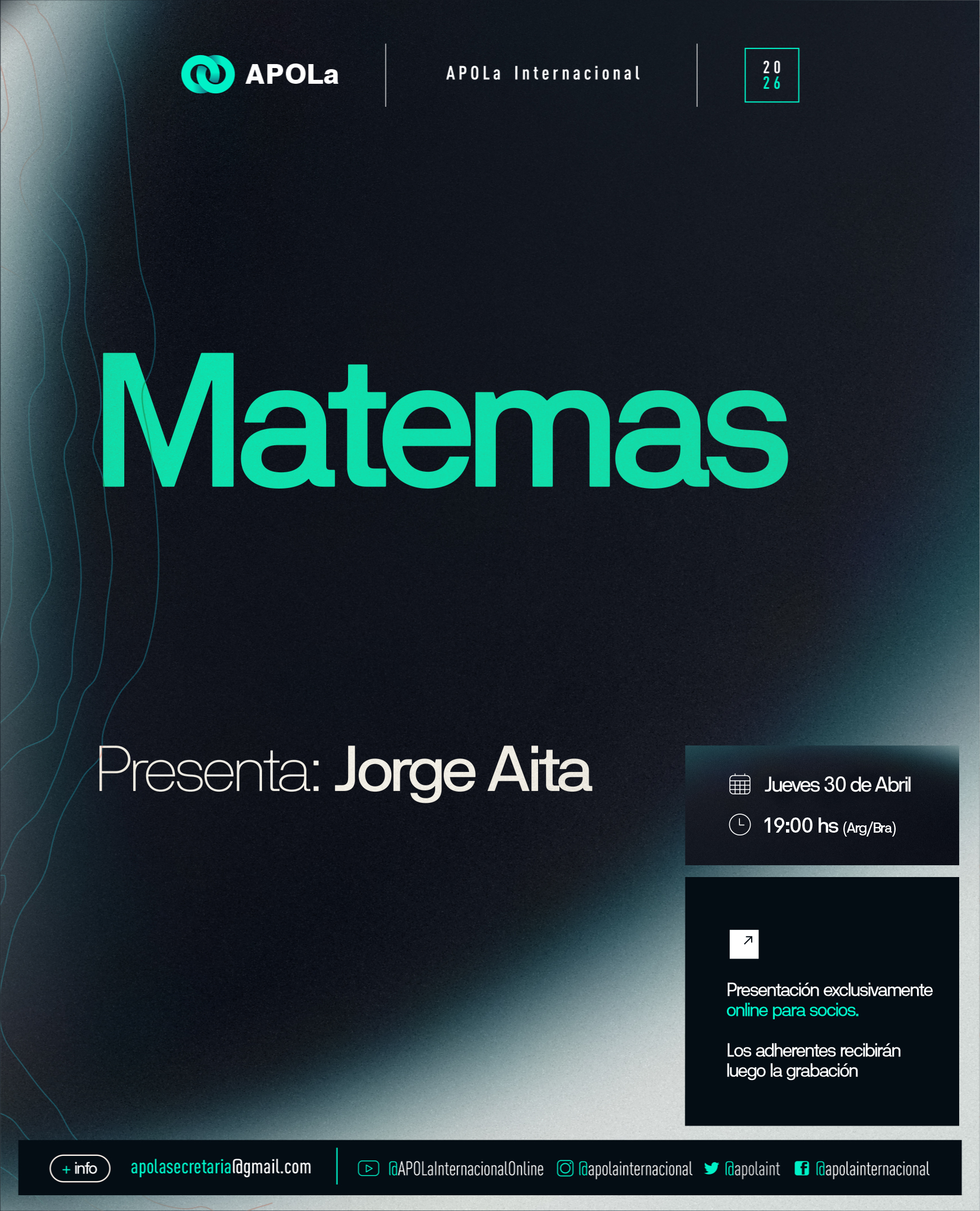 Aqueles que desejam se associar à APOLa como adherente, devem preencher o formulário no link a seguir: Associe-se à APOLa como adherente (NO SOCIO) Formulario de Inscripción